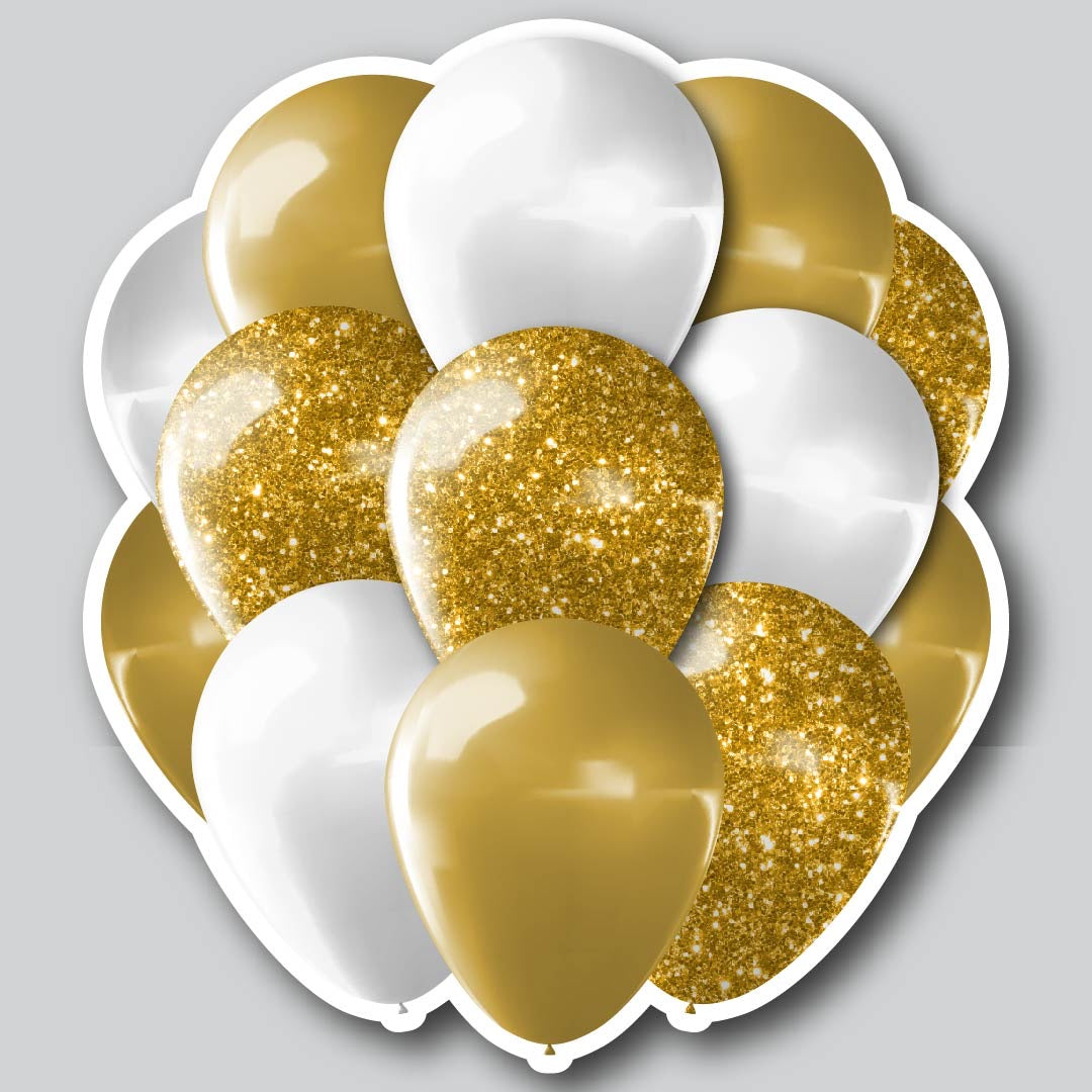 LARGE BALLOON CLUSTERS - GOLD/WHITE GLITTER