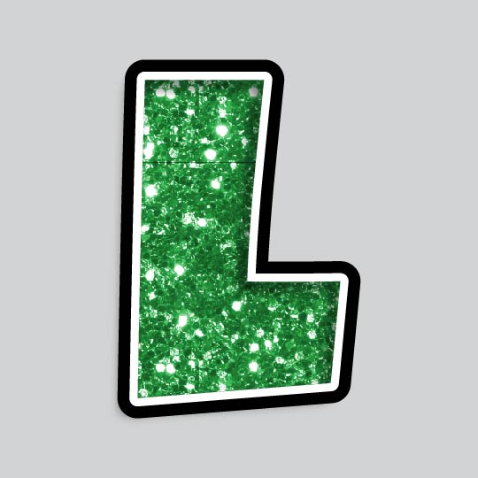 23.5” INDIVIDUAL LUCKY GUY GREEN CHUNKY GLITTER LETTERS